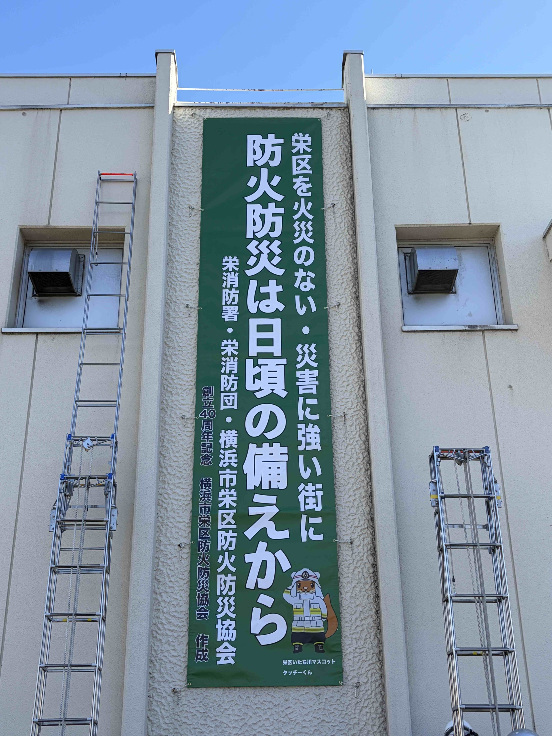 古くて見づらかった豊田消防出張所と上郷消防出張所の広報幕が、緑に囲まれた栄区をイメージした緑色を基調にした綺麗な幕に変わりました。 お知らせ よかったらシェアしてね! URL Copied! URL Copied! 令和8年栄区消防出初式に協賛しました! 横浜市栄区防火防災協会40周年記念事業「防災講演会」の開催が決定! 関連投稿 横浜市栄区防火防災協会40周年記念事業「防災講演会」の開催が決定! 2026年3月5日 令和8年栄区消防出初式に協賛しました! 2026年3月5日 令和8年栄区消防出初式の開催について 2025年12月3日 区政40周年記念事業の協賛について 2025年12月3日 令和7年度横浜市消防操法技術訓練会の開催について 2025年12月3日 令和7年度栄区自衛消防隊技術訓練会の開催について 2025年12月3日 人事異動のお知らせ 2025年8月26日 熱中症予防・住宅用火災警報器の広報ポスターを作成しました 2025年8月26日